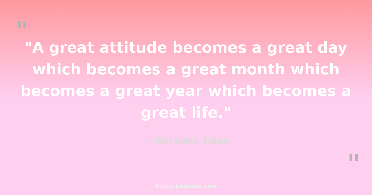 "A great attitude becomes a great day which becomes a great month which becomes a great year which becomes a great life."