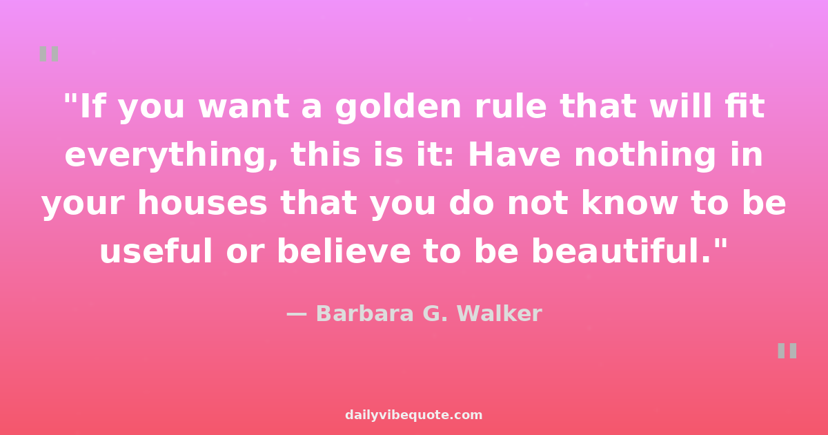 "If you want a golden rule that will fit everything, this is it: Have nothing in your houses that you do not know to be useful or believe to be beautiful."