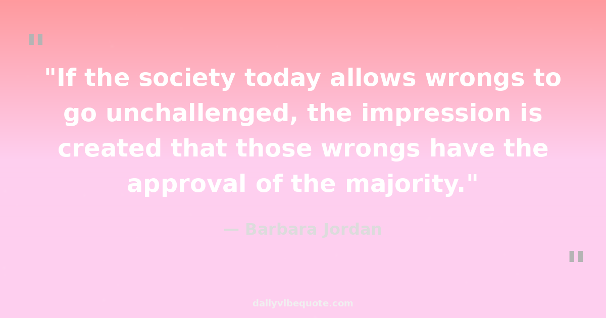 "If the society today allows wrongs to go unchallenged, the impression is created that those wrongs have the approval of the majority."