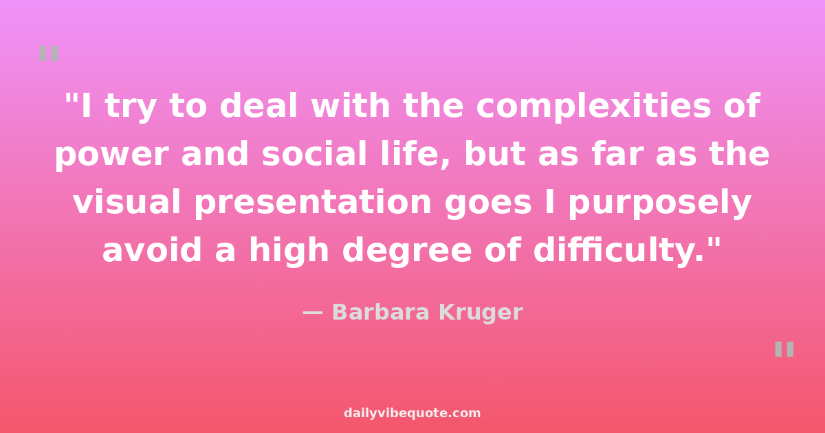 Barbara Kruger is an American conceptual artist known for her bold and provocative works that combine imagery with text. She rose to prominence in the 1980s with her distinctive aesthetic, often using black-and-white photographs overlaid with terse, powerful statements in white-on-red Futura Bold Oblique font. Kruger's art often explores themes of consumerism, feminism, and identity, challenging viewers to question societal norms and power dynamics. Her work has been exhibited in major museums worldwide, and she continues to be a influential figure in contemporary art.
