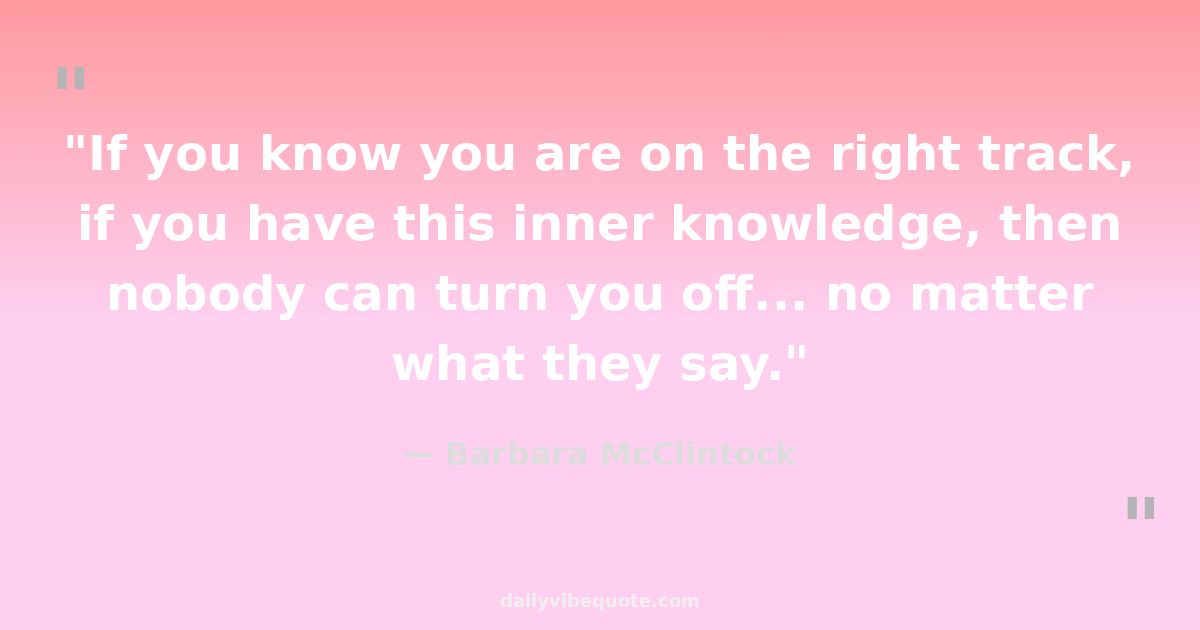 "If you know you are on the right track, if you have this inner knowledge, then nobody can turn you off... no matter what they say."