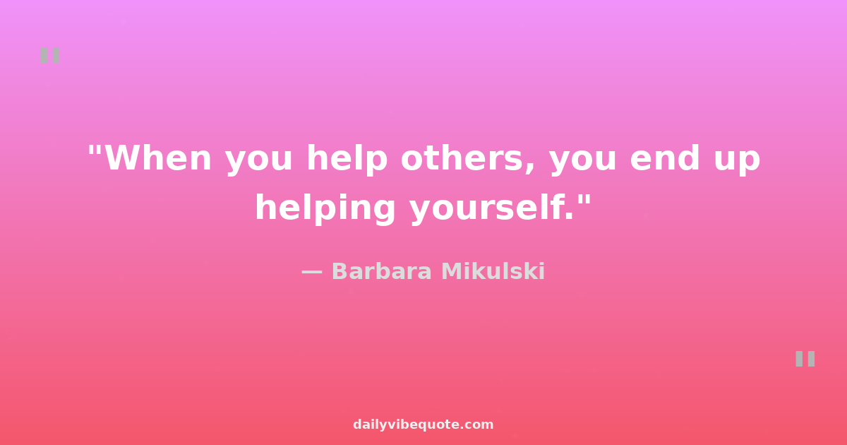 "When you help others, you end up helping yourself."