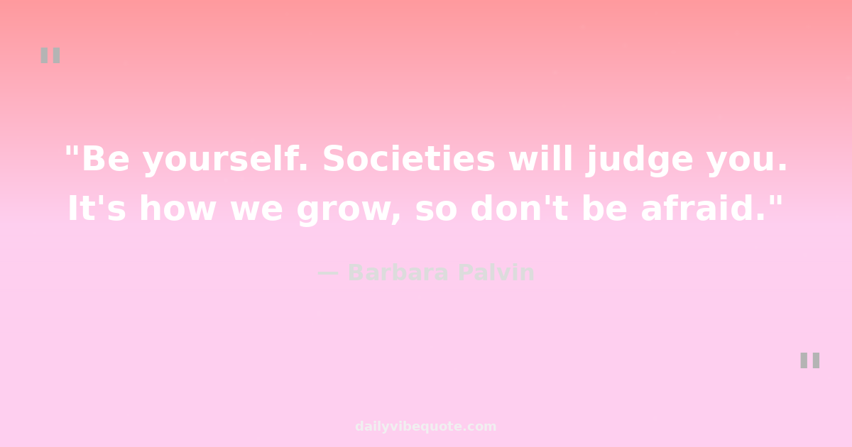 "Be yourself. Societies will judge you. It's how we grow, so don't be afraid."