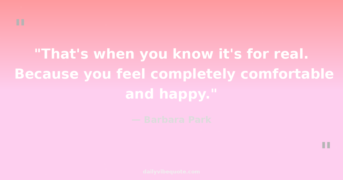 "That's when you know it's for real. Because you feel completely comfortable and happy."