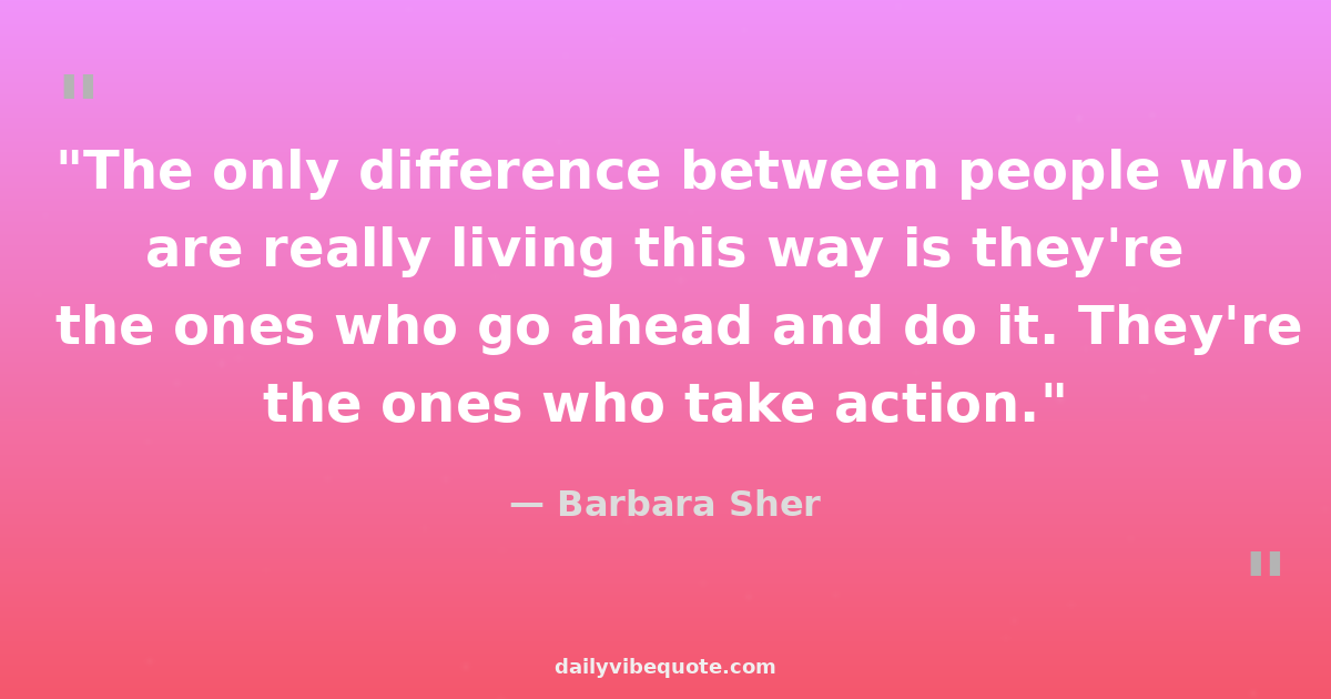 "The only difference between people who are really living this way is they're the ones who go ahead and do it. They're the ones who take action."