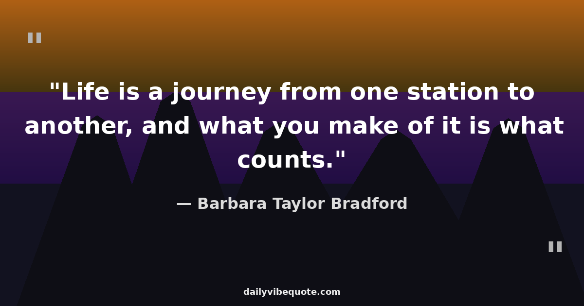"Life is a journey from one station to another, and what you make of it is what counts."