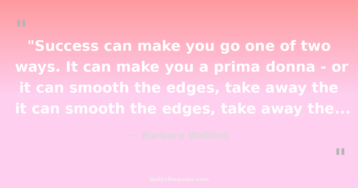 "Success can make you go one of two ways. It can make you a prima donna - or it can smooth the edges, take away the insecurities, let the nice things come out."