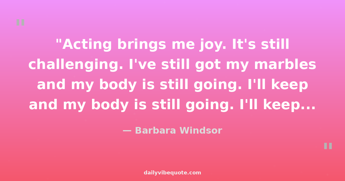 "Acting brings me joy. It's still challenging. I've still got my marbles and my body is still going. I'll keep going as long as there's work and I'm wanted."