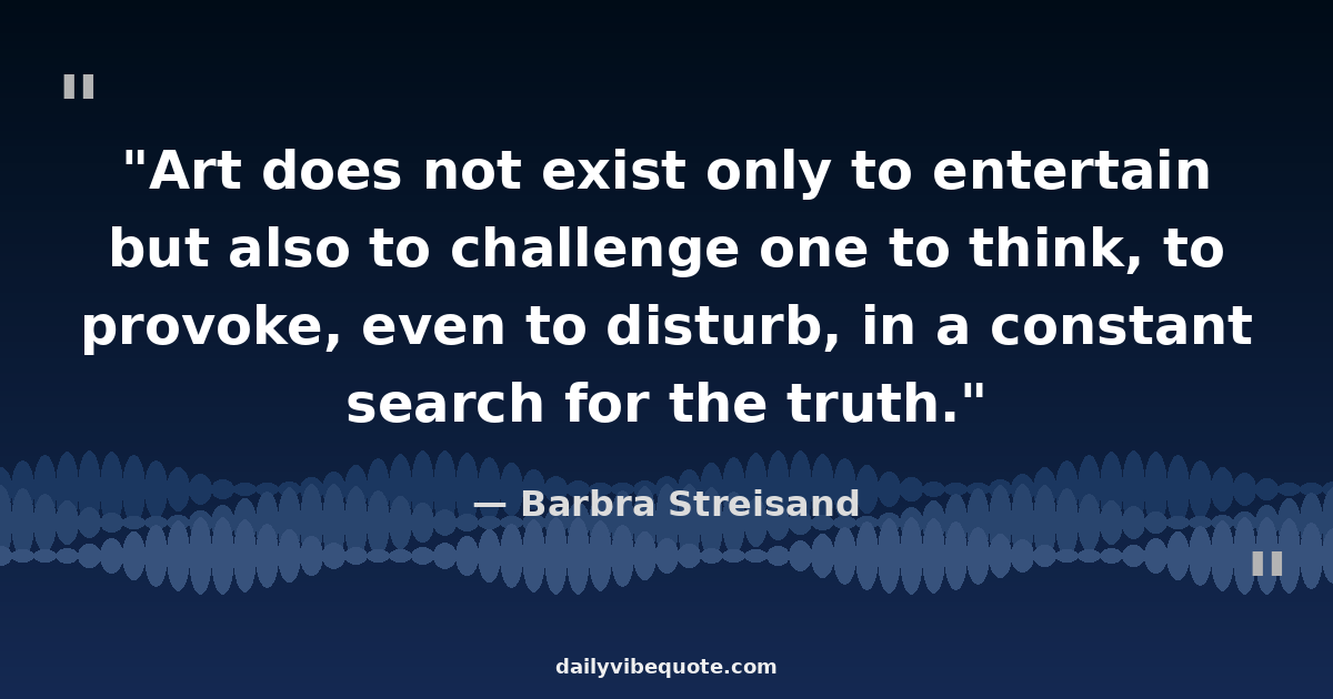 "Art does not exist only to entertain but also to challenge one to think, to provoke, even to disturb, in a constant search for the truth."