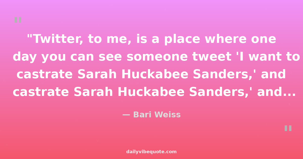 "Twitter, to me, is a place where one day you can see someone tweet 'I want to castrate Sarah Huckabee Sanders,' and then the next tweet is like, 'We need more love in the world.'"