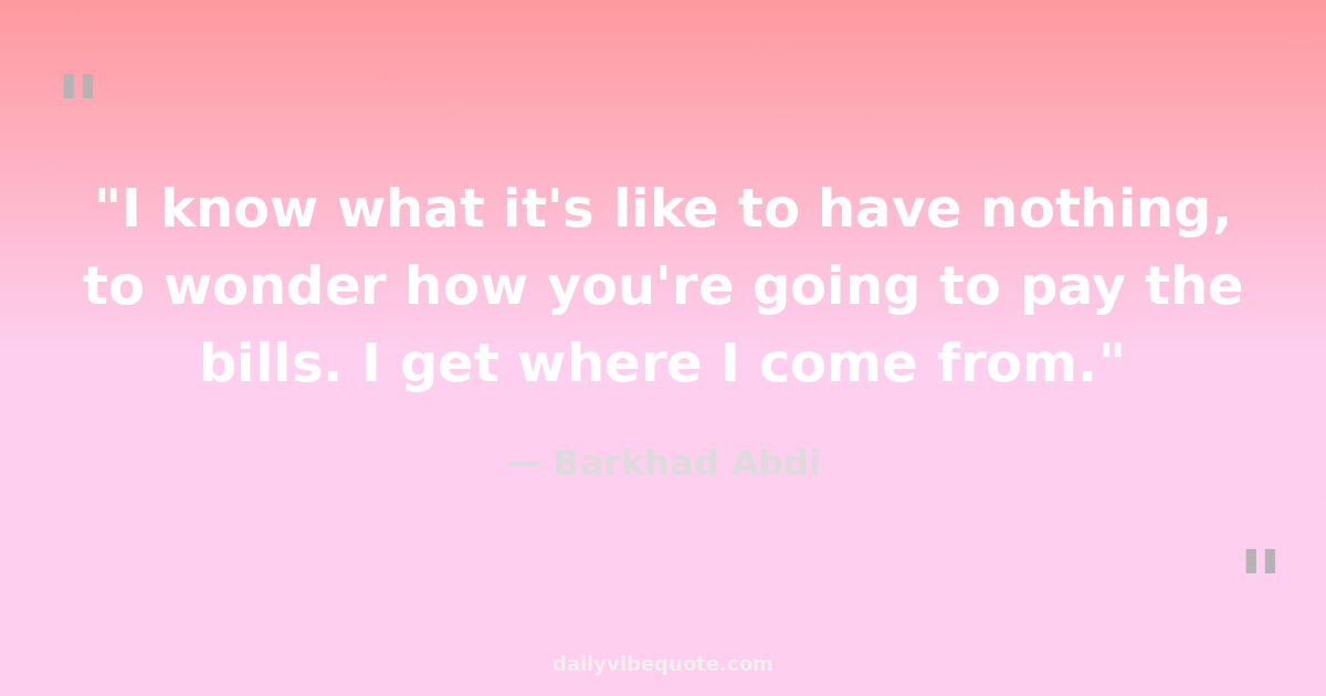 "I know what it's like to have nothing, to wonder how you're going to pay the bills. I get where I come from."