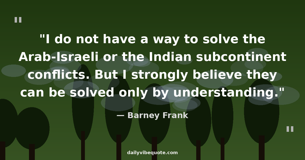 "I do not have a way to solve the Arab-Israeli or the Indian subcontinent conflicts. But I strongly believe they can be solved only by understanding."