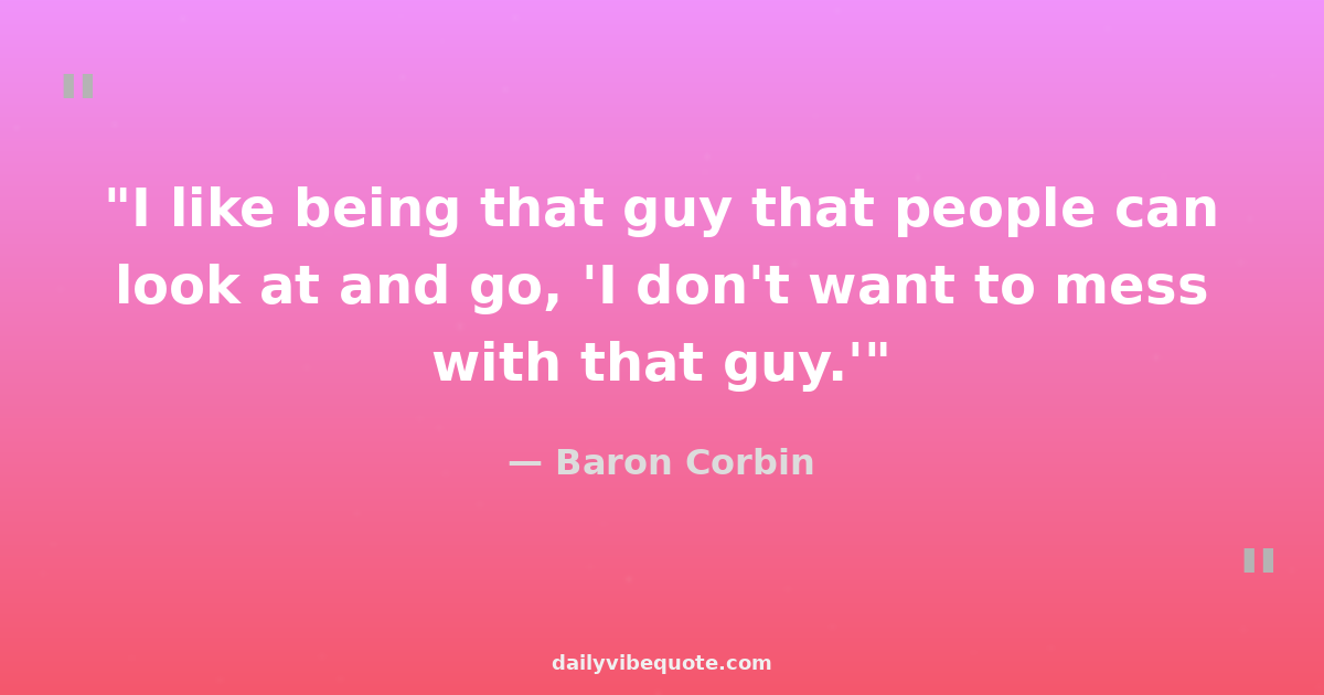 "I like being that guy that people can look at and go, 'I don't want to mess with that guy.'"