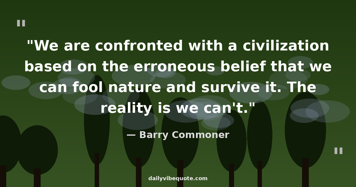 "We are confronted with a civilization based on the erroneous belief that we can fool nature and survive it. The reality is we can't."