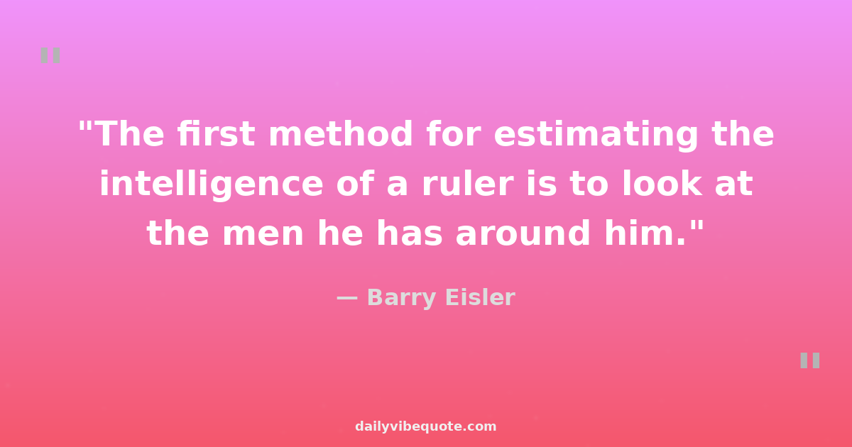 "The first method for estimating the intelligence of a ruler is to look at the men he has around him."