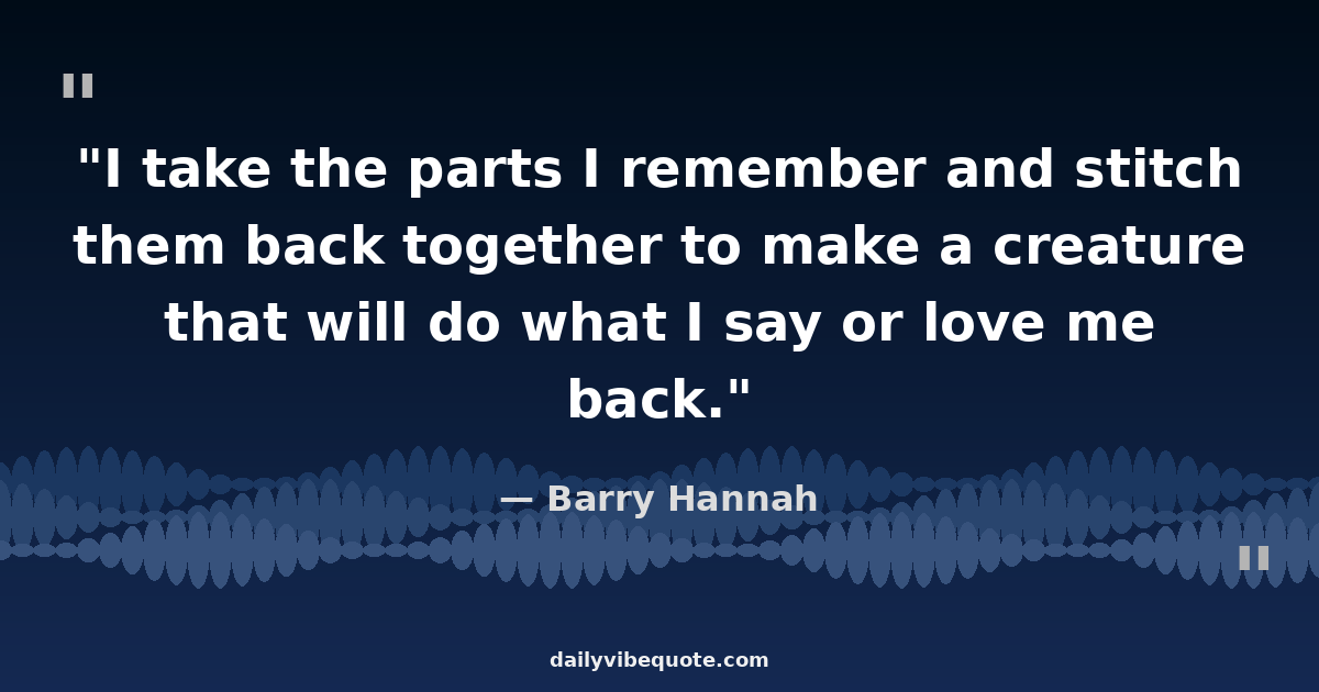 "I take the parts I remember and stitch them back together to make a creature that will do what I say or love me back."