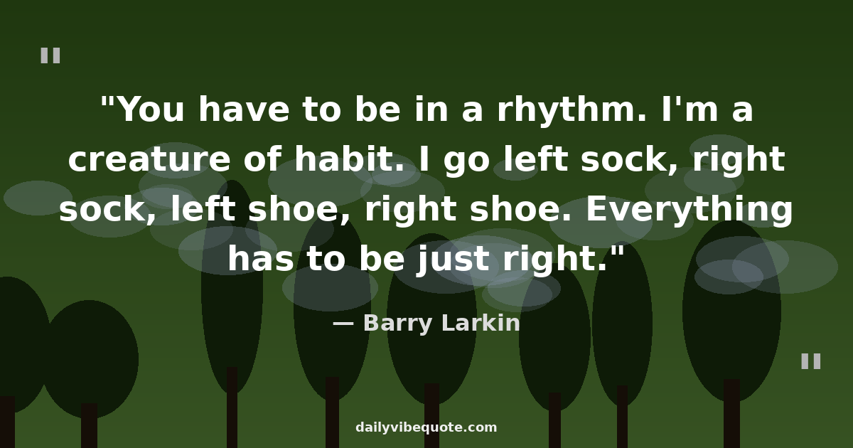 "You have to be in a rhythm. I'm a creature of habit. I go left sock, right sock, left shoe, right shoe. Everything has to be just right."