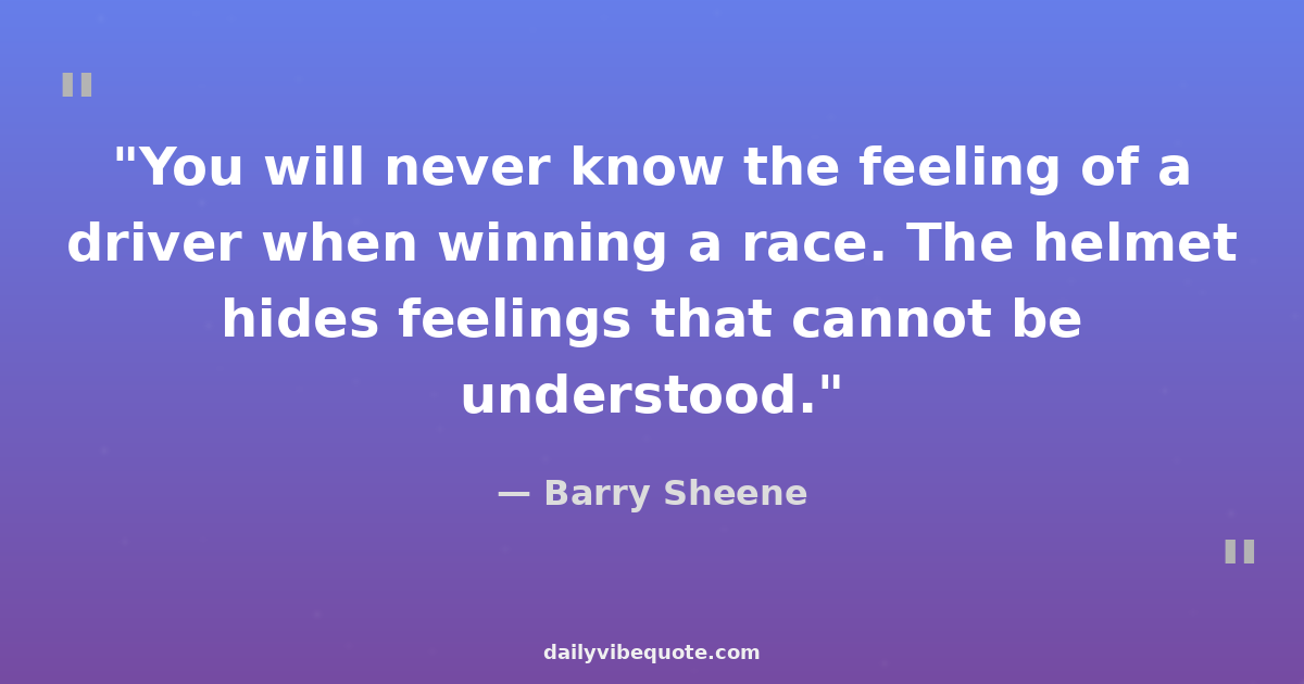 "You will never know the feeling of a driver when winning a race. The helmet hides feelings that cannot be understood."