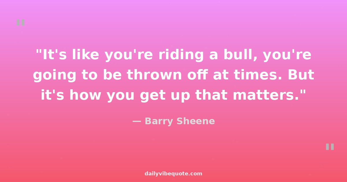 "It's like you're riding a bull, you're going to be thrown off at times. But it's how you get up that matters."