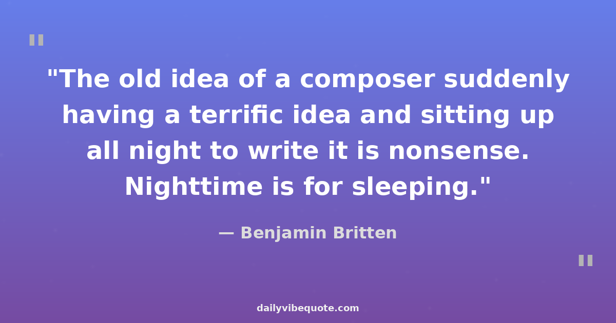 "The old idea of a composer suddenly having a terrific idea and sitting up all night to write it is nonsense. Nighttime is for sleeping."