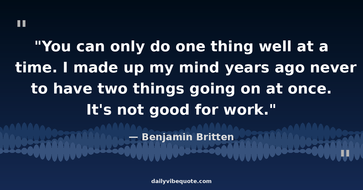 "You can only do one thing well at a time. I made up my mind years ago never to have two things going on at once. It's not good for work."