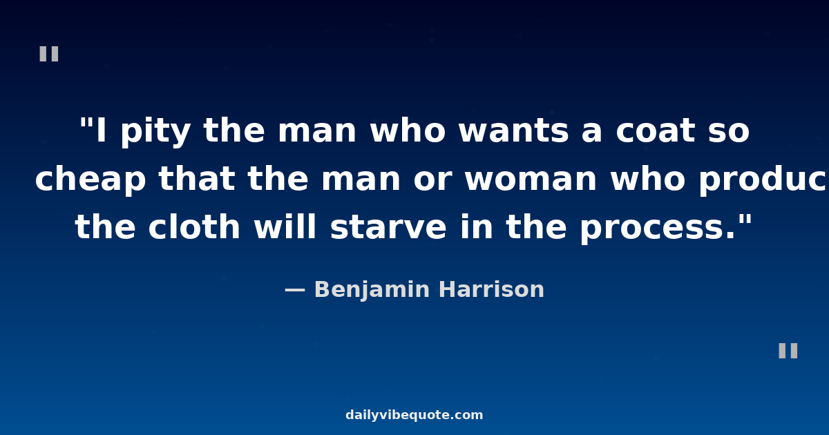 "I pity the man who wants a coat so cheap that the man or woman who produces the cloth will starve in the process."