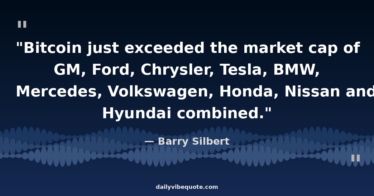"Bitcoin just exceeded the market cap of GM, Ford, Chrysler, Tesla, BMW, Mercedes, Volkswagen, Honda, Nissan and Hyundai combined."