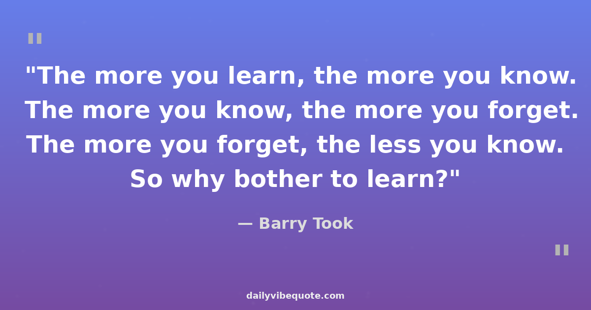"The more you learn, the more you know. The more you know, the more you forget. The more you forget, the less you know. So why bother to learn?"