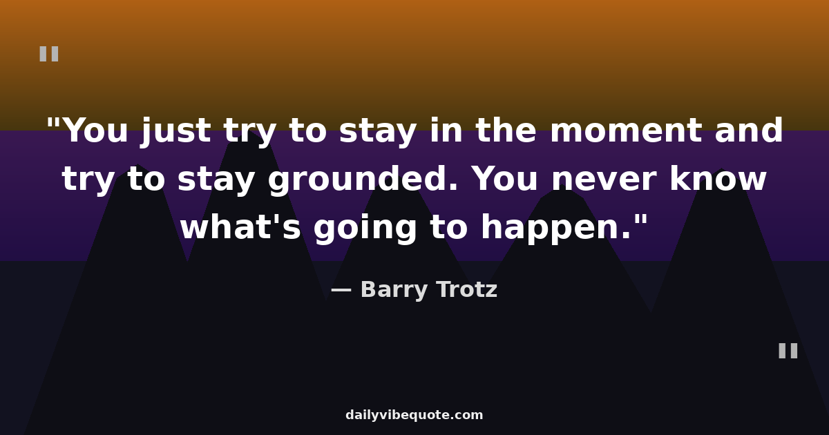 "You just try to stay in the moment and try to stay grounded. You never know what's going to happen."