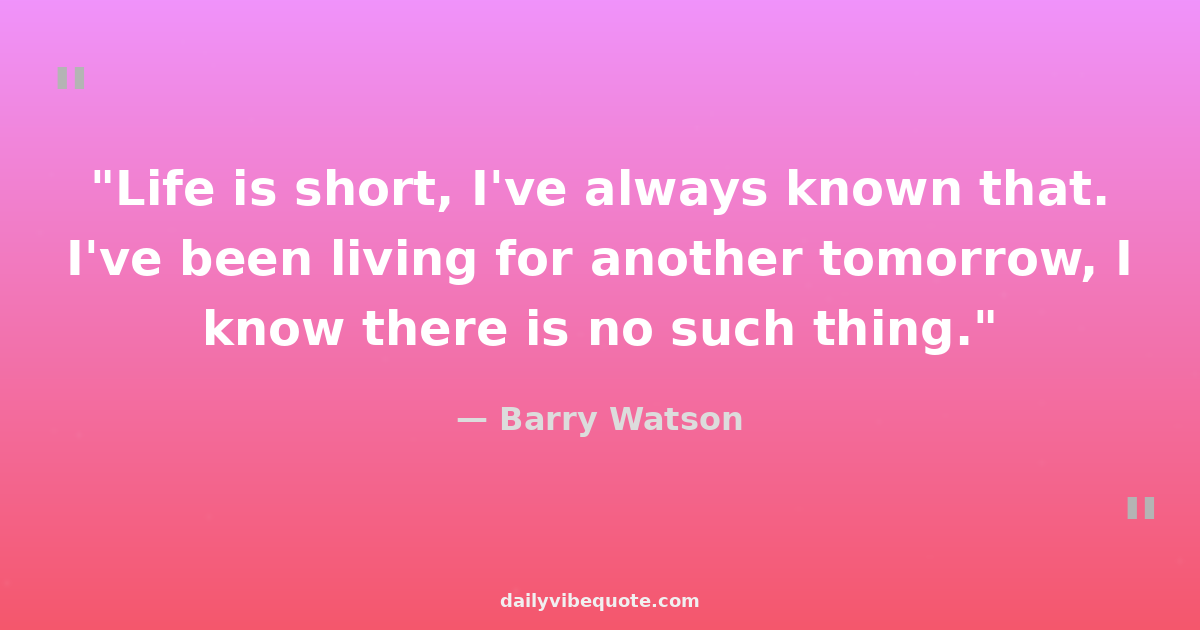 "Life is short, I've always known that. I've been living for another tomorrow, I know there is no such thing."
