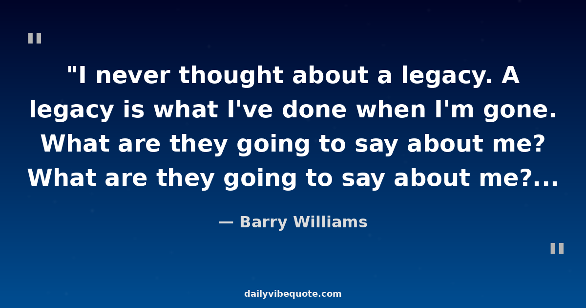 "I never thought about a legacy. A legacy is what I've done when I'm gone. What are they going to say about me? What did I contribute? That's what a legacy is about."
