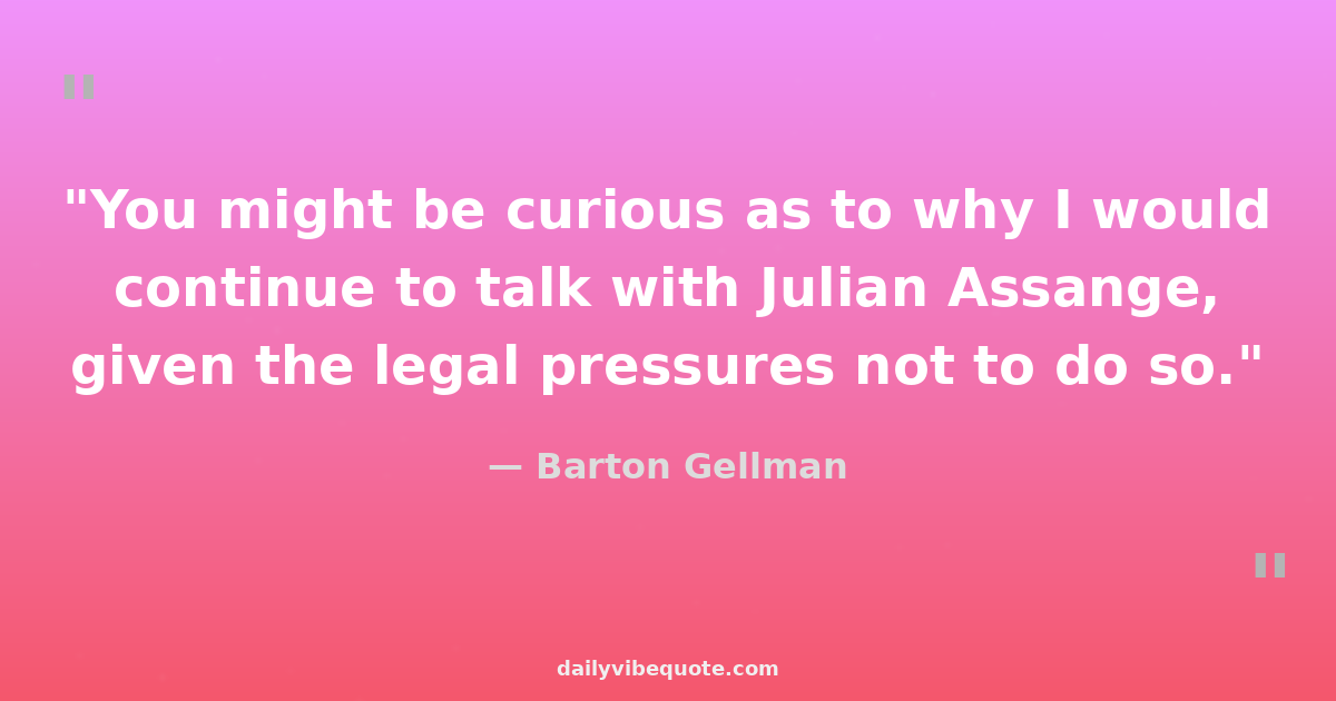 "You might be curious as to why I would continue to talk with Julian Assange, given the legal pressures not to do so."