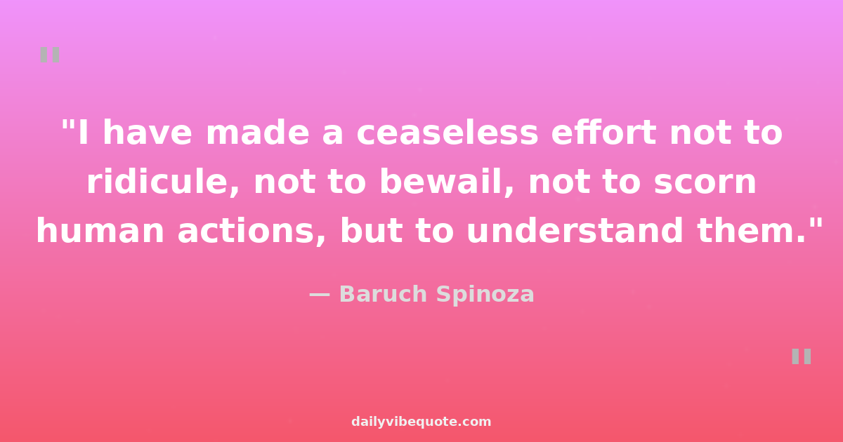 "I have made a ceaseless effort not to ridicule, not to bewail, not to scorn human actions, but to understand them."