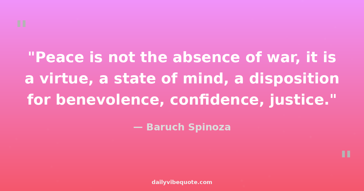 "Peace is not the absence of war, it is a virtue, a state of mind, a disposition for benevolence, confidence, justice."