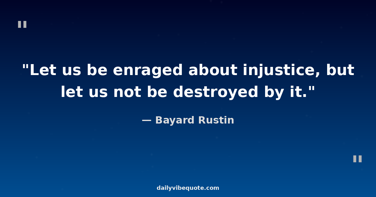 "Let us be enraged about injustice, but let us not be destroyed by it."