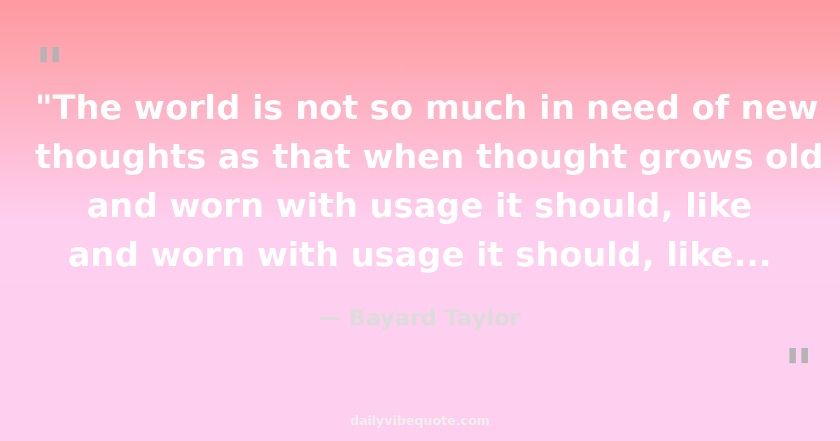 "The world is not so much in need of new thoughts as that when thought grows old and worn with usage it should, like current coin, be called in, and, from the mint of genius, reissued fresh and new."