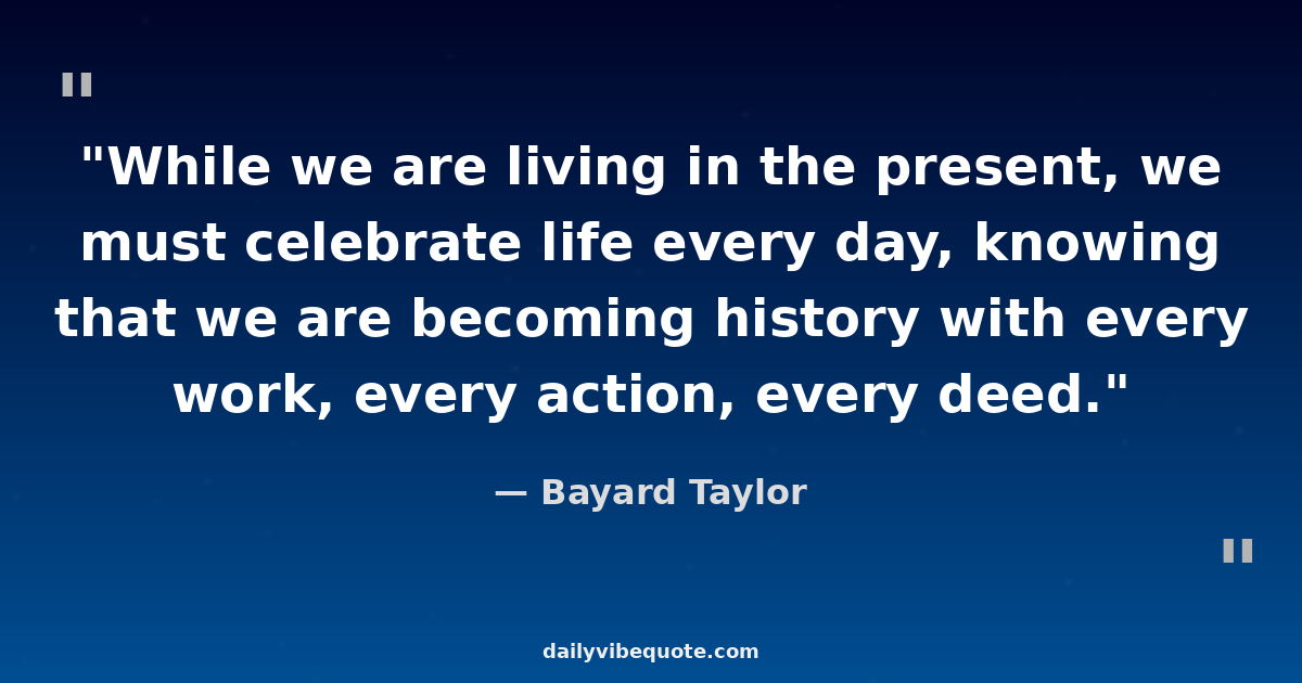 "While we are living in the present, we must celebrate life every day, knowing that we are becoming history with every work, every action, every deed."