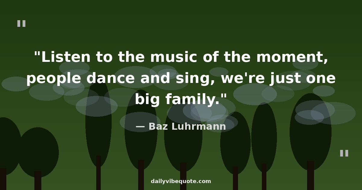 "Listen to the music of the moment, people dance and sing, we're just one big family."