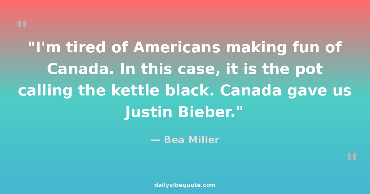 "I'm tired of Americans making fun of Canada. In this case, it is the pot calling the kettle black. Canada gave us Justin Bieber."