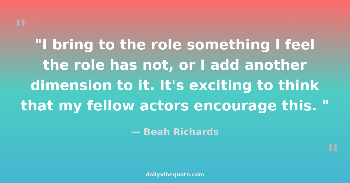 "I bring to the role something I feel the role has not, or I add another dimension to it. It's exciting to think that my fellow actors encourage this. "
