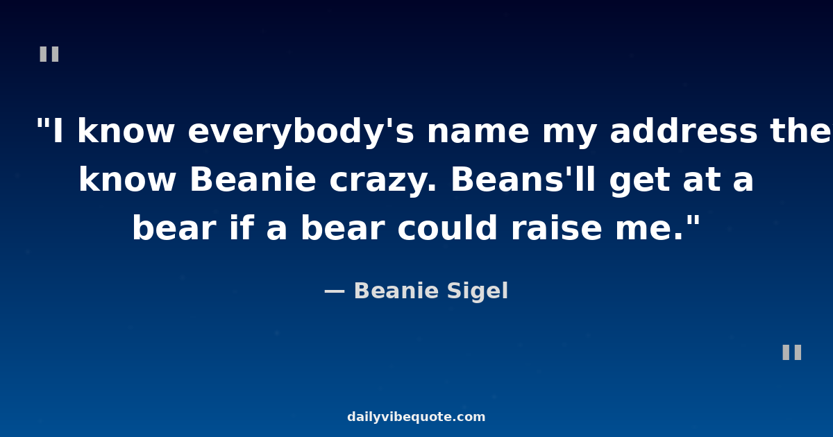 "I know everybody's name my address they know Beanie crazy. Beans'll get at a bear if a bear could raise me."