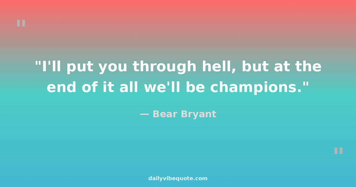 "I'll put you through hell, but at the end of it all we'll be champions."