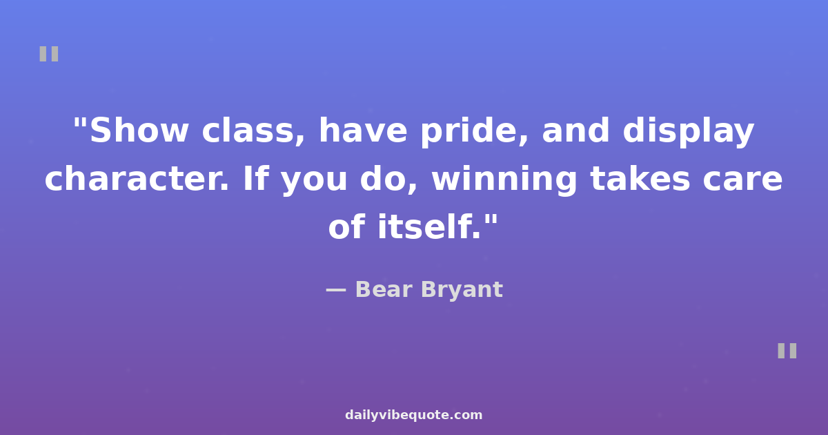 "Show class, have pride, and display character. If you do, winning takes care of itself."