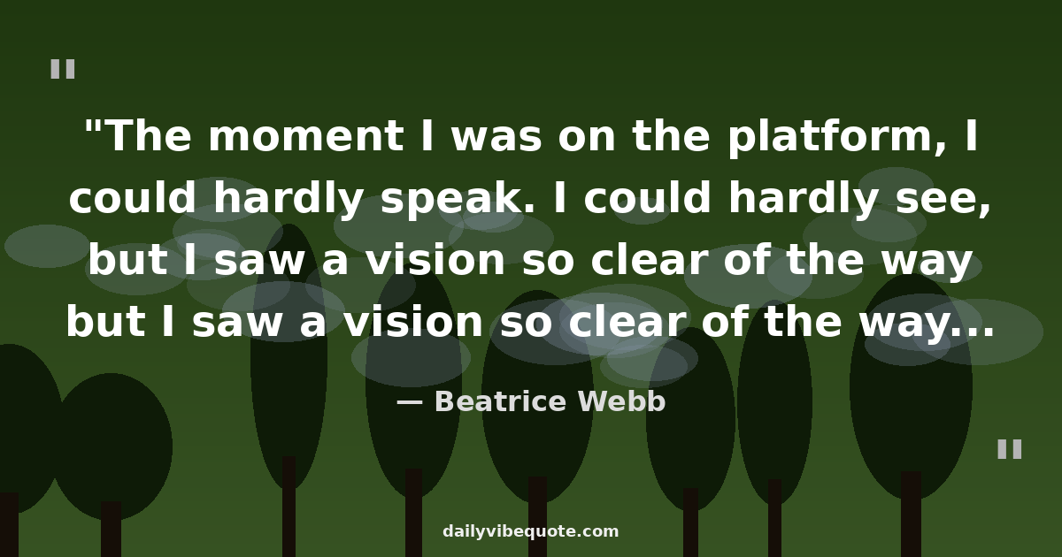"The moment I was on the platform, I could hardly speak. I could hardly see, but I saw a vision so clear of the way by which we could get the principle passed that I lost my nervousness."