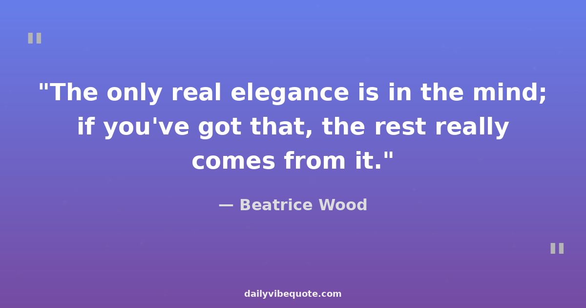 "The only real elegance is in the mind; if you've got that, the rest really comes from it."