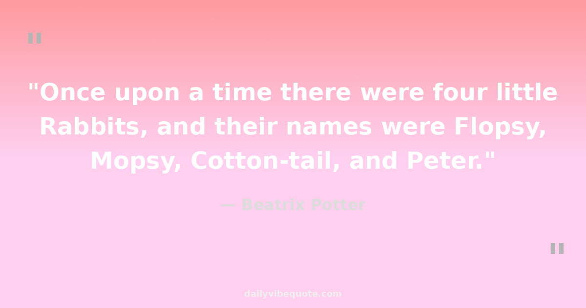 "Once upon a time there were four little Rabbits, and their names were Flopsy, Mopsy, Cotton-tail, and Peter."