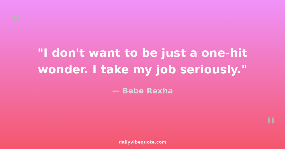"I don't want to be just a one-hit wonder. I take my job seriously."