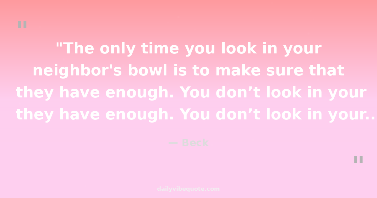 "The only time you look in your neighbor's bowl is to make sure that they have enough. You don’t look in your neighbor's bowl to see if you have as much as them."