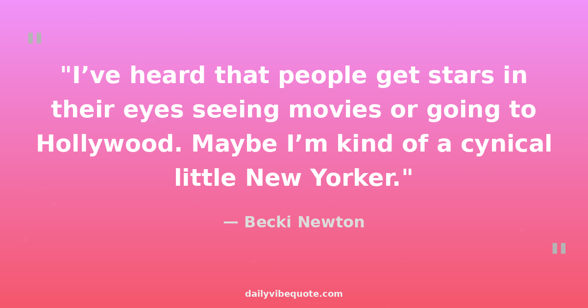 "I’ve heard that people get stars in their eyes seeing movies or going to Hollywood. Maybe I’m kind of a cynical little New Yorker."