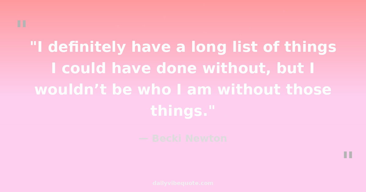 "I definitely have a long list of things I could have done without, but I wouldn’t be who I am without those things."